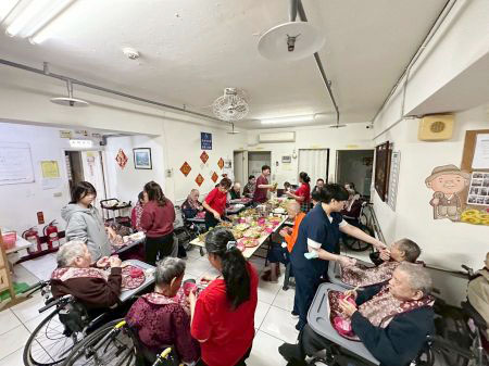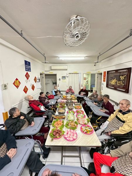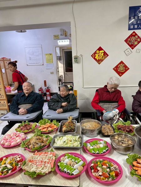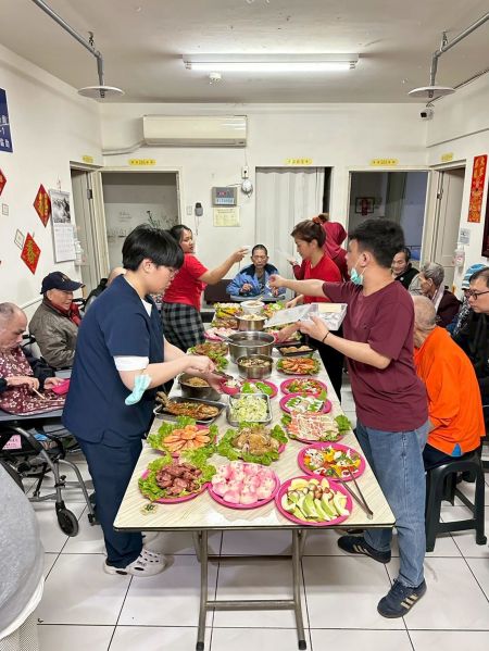 為了讓長輩們感受濃濃的年味,我們舉辦了溫馨的圍爐聚餐,主任、護理師、照服員以及全體員工齊聚一堂,與長輩們像家人般共同慶祝。