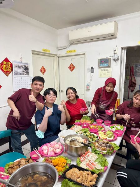 【暖心圍爐聚餐】大家吃吃喝喝、話家常,熱騰騰的飯菜溫暖了每個人的心。