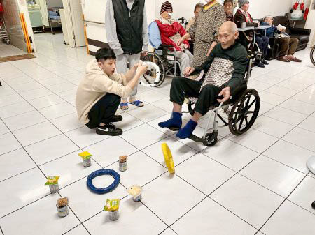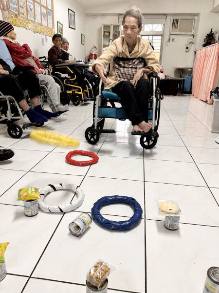 今天祥和的活動大廳比過年還熱鬧!為了贏得心心念念的餅乾,長輩們個個化身「神投手」。